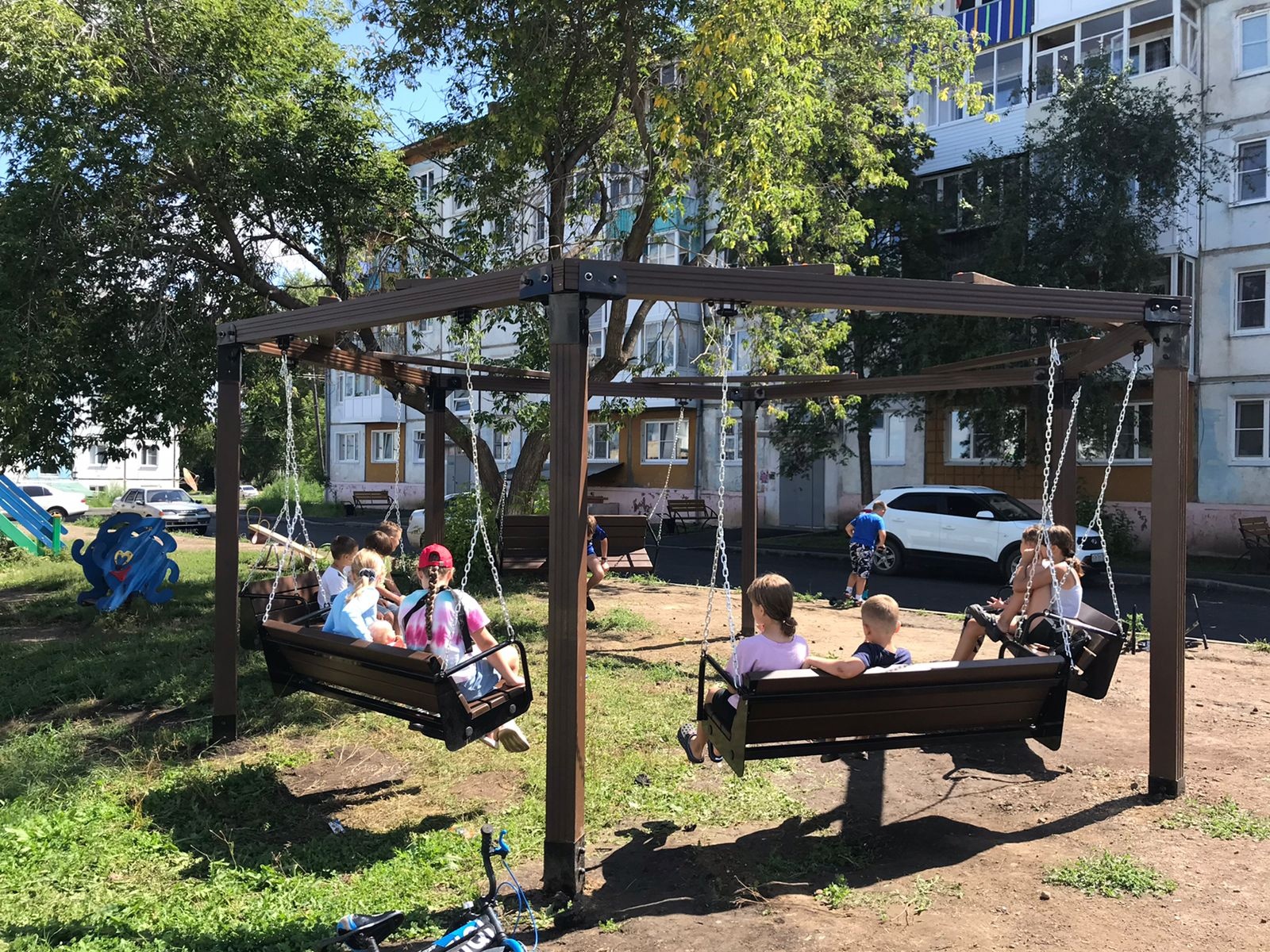 Приобретение и установка 3 комплексов игрового оборудования «Качели» в пос. Железнодорожников – ул. Шмелькова, 3, пос. Гидролизный – ул. Горького, 19, пос. Стекольный – д. 52. ул. Шмелькова, д. 3, ул. Шахтерская, 5