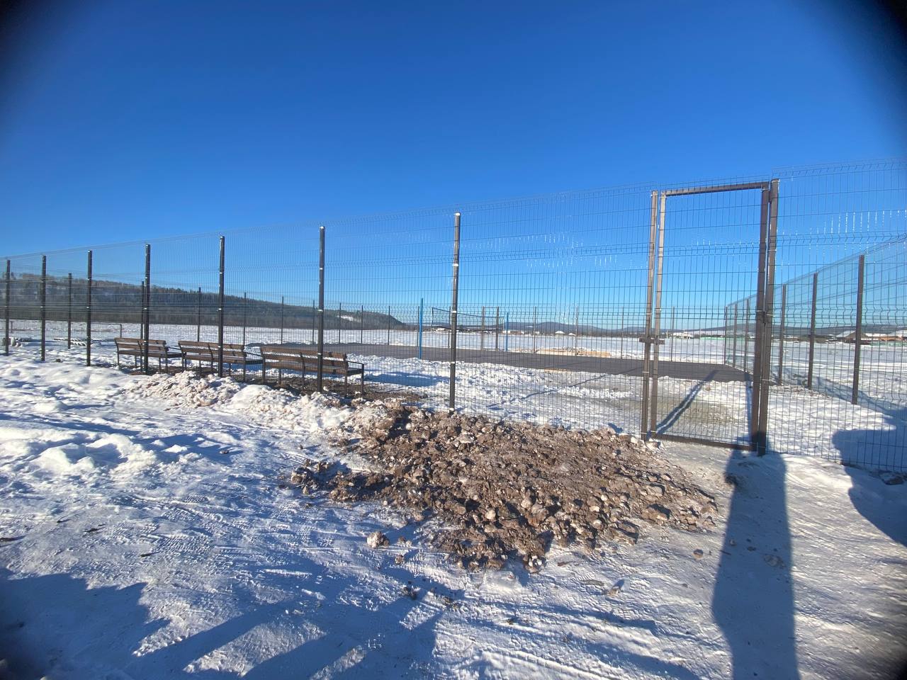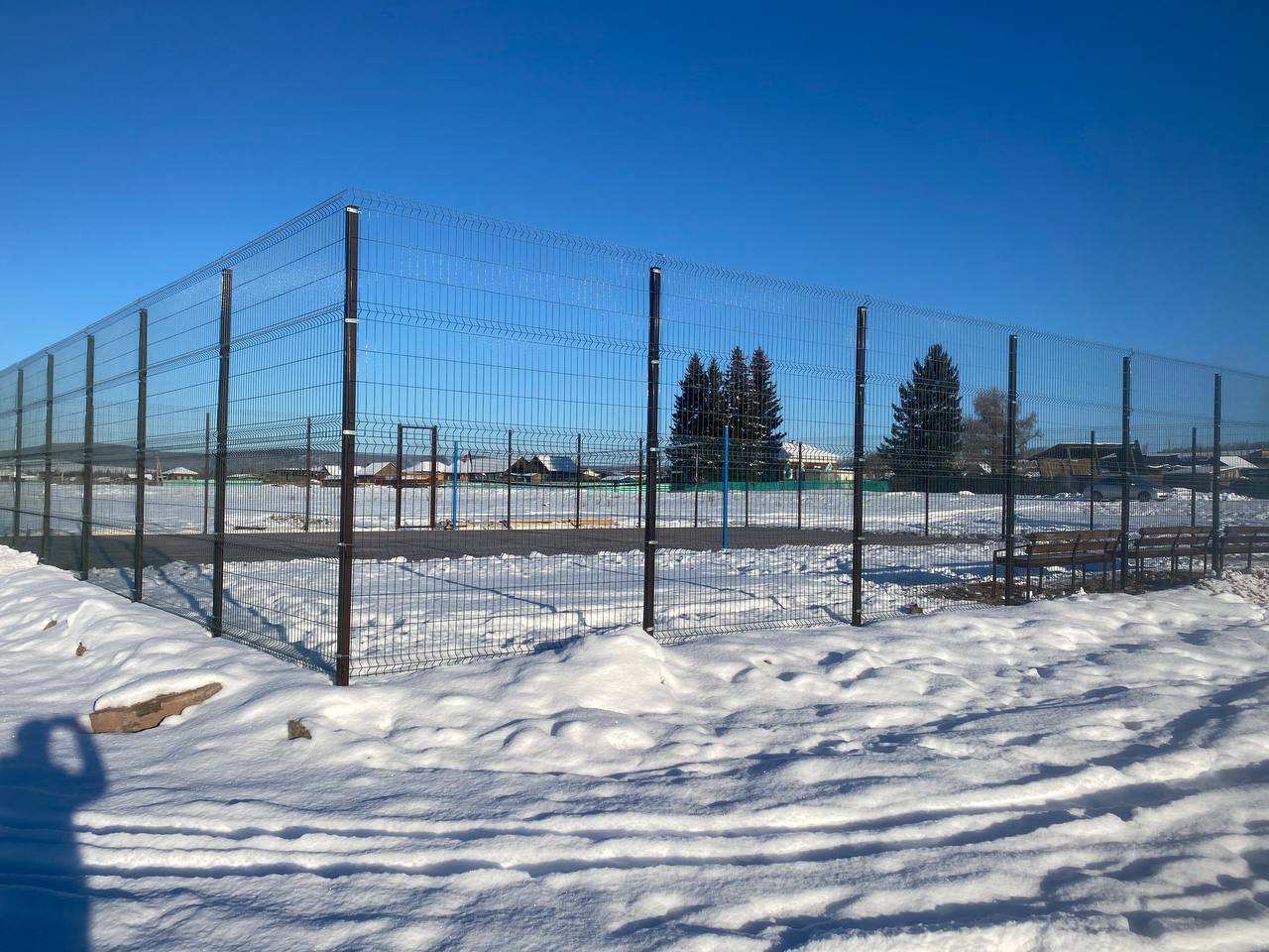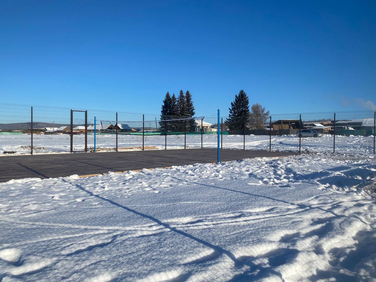На территории деревни не было ни одного оборудованного спортивного объекта. В рамках проекта было установлено металлическое ограждение площадки, деревянное покрытие, стойка и сетка волейбольная.