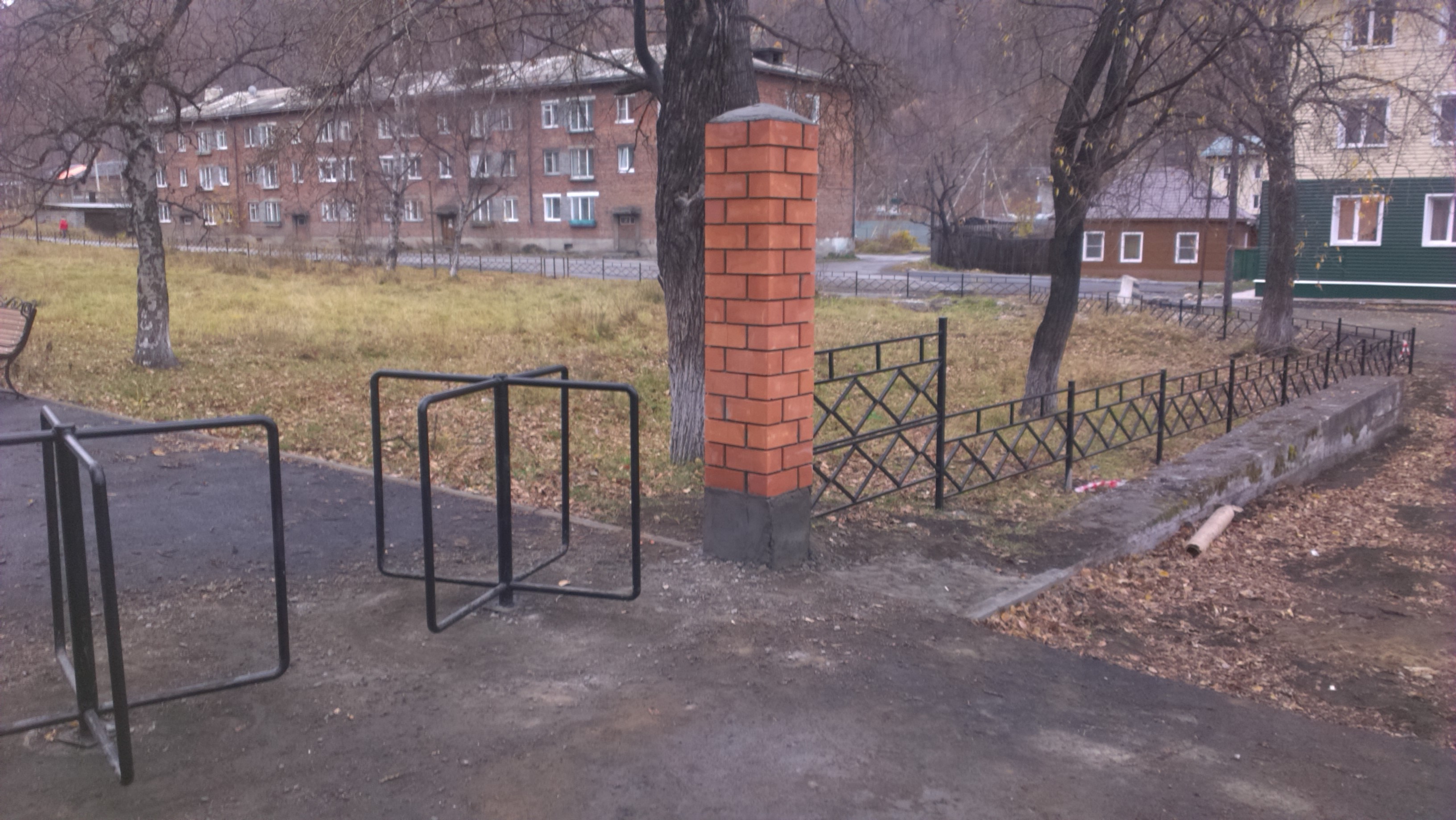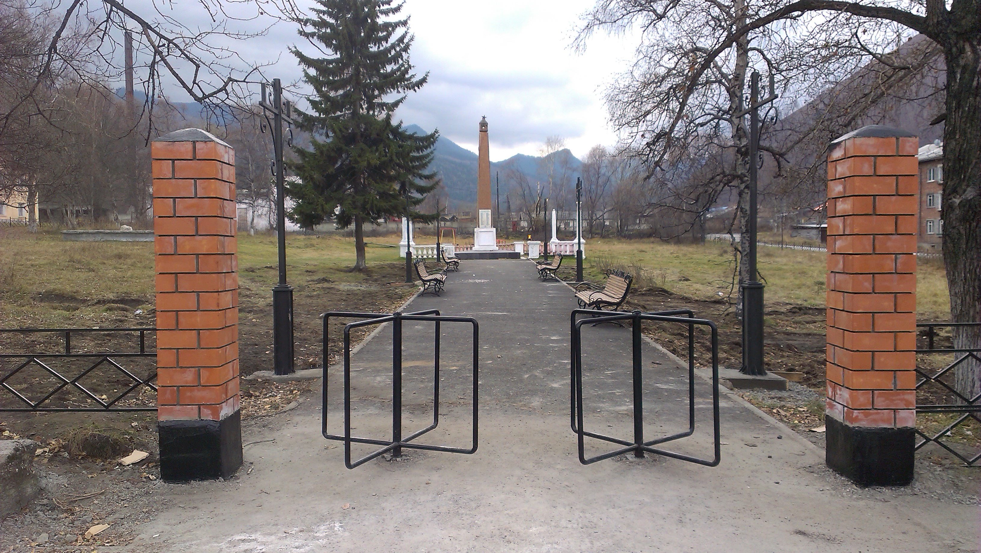 Асфальтирование пешеходной дорожки, установка фонарей, установка кованых скамеек, установка ограждения, установка кирпичных колонн