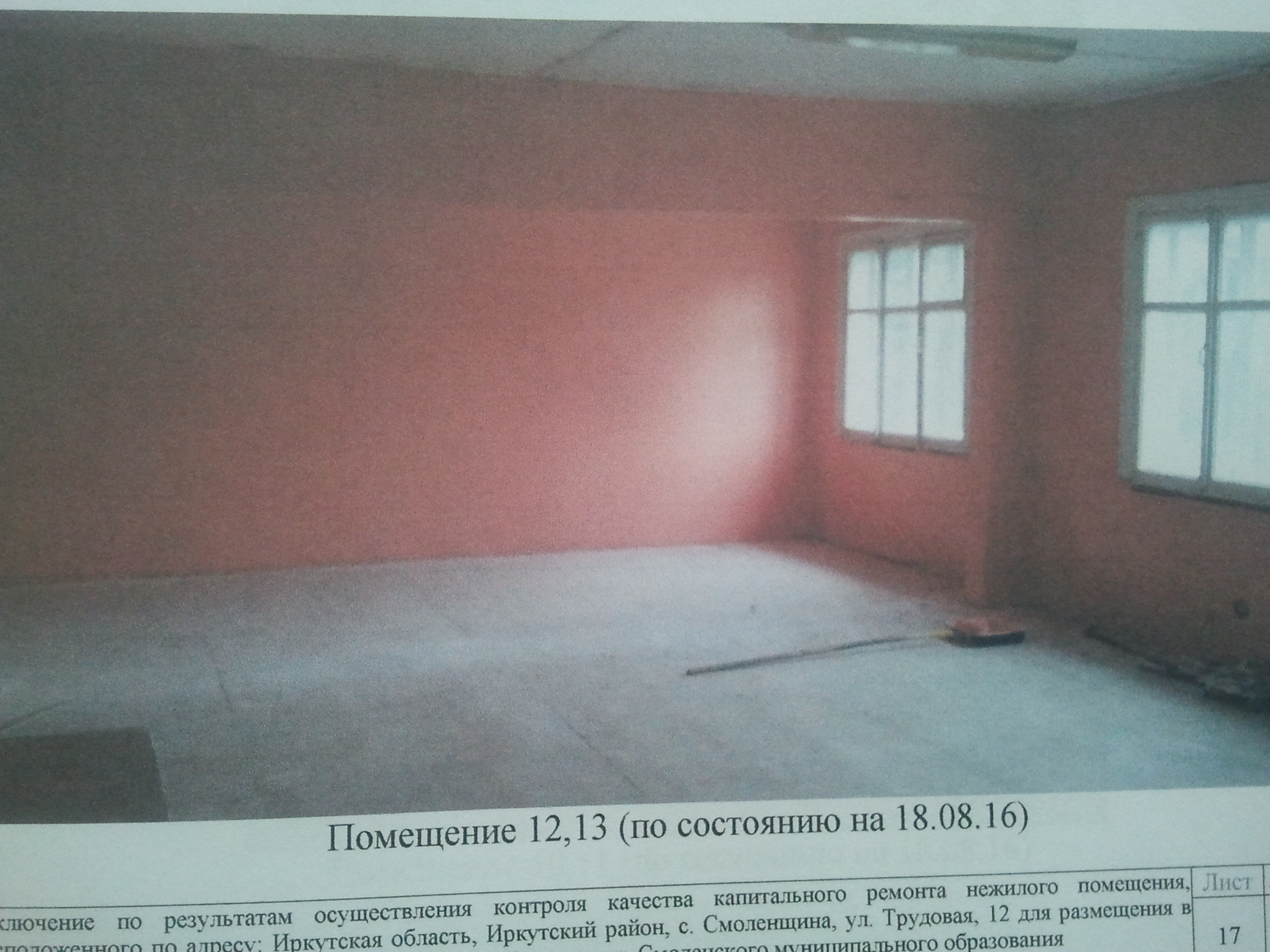 Капитальный ремонт нежилого помещения, расположенного по адресу: Иркутский район, с. Смоленщина, ул. Трудовая, 12