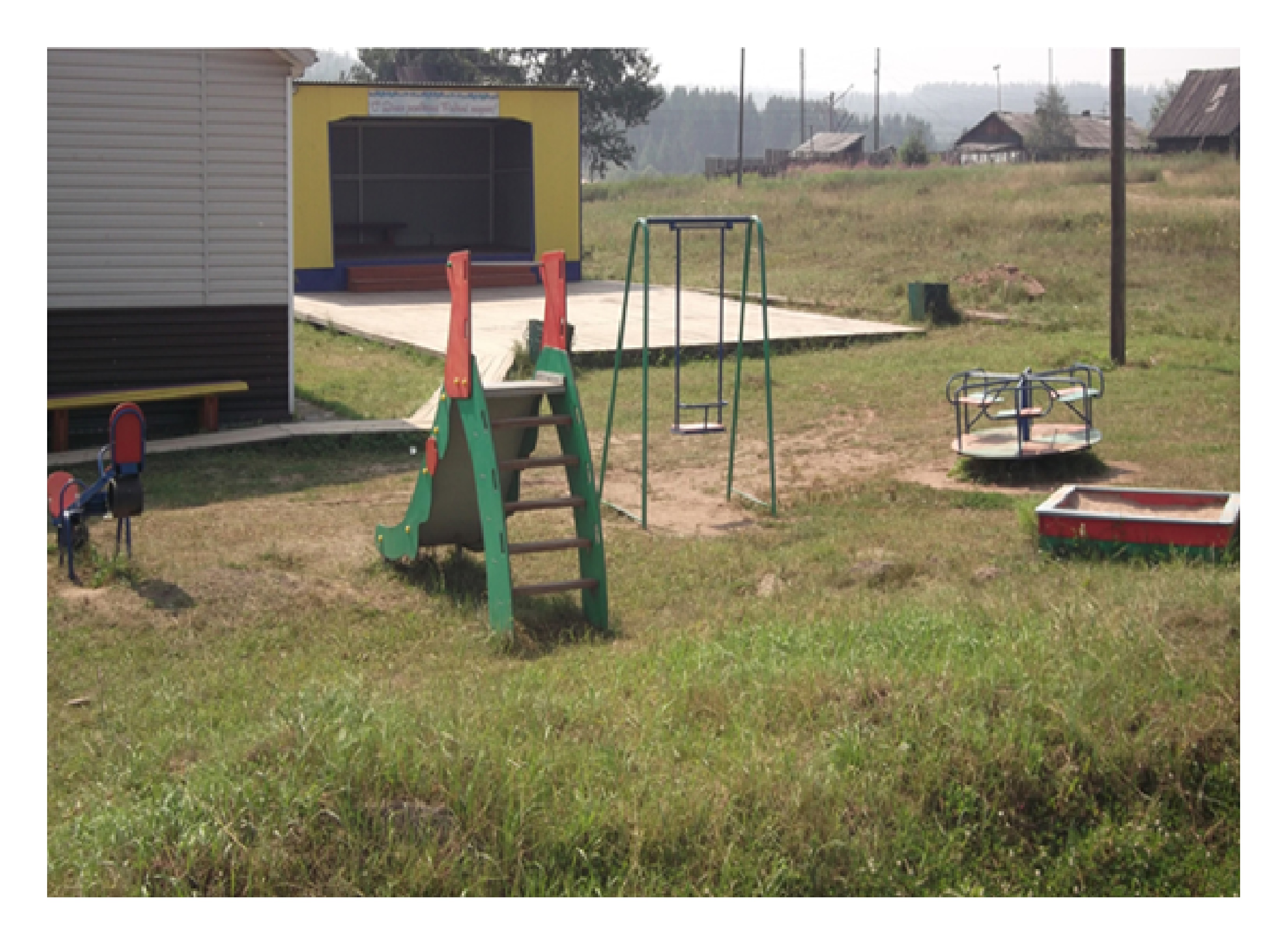 Приобретена и установлена детская площадка в которую входят: - горка - 1 шт; - карусель - 1 шт; - качели одинарные - 1 шт; - качалка - балансир -1 шт; - песочница - 1 шт; - рукоход - 1 шт; - шведская стенка с турником - 1 шт; - лиана - 1 шт.