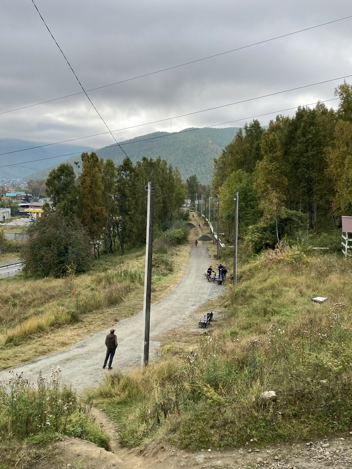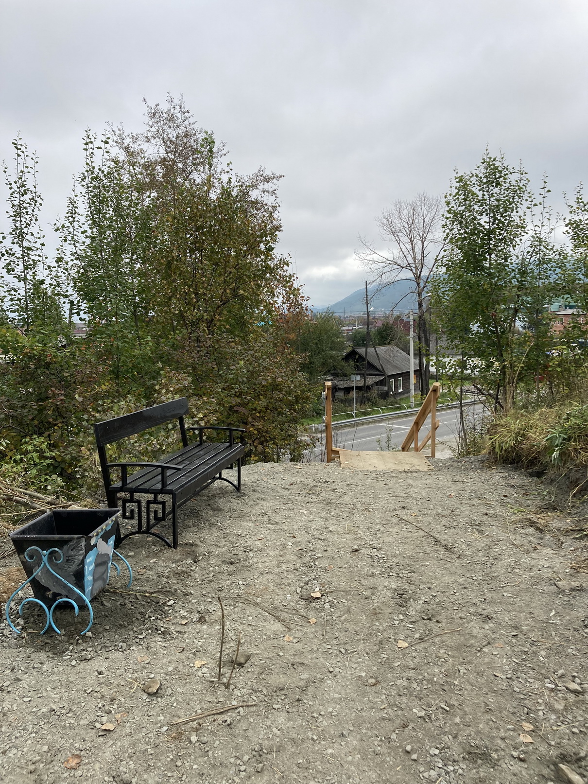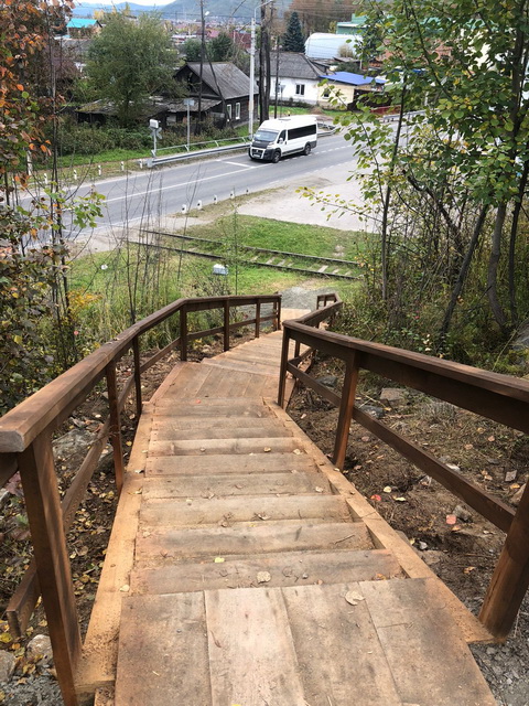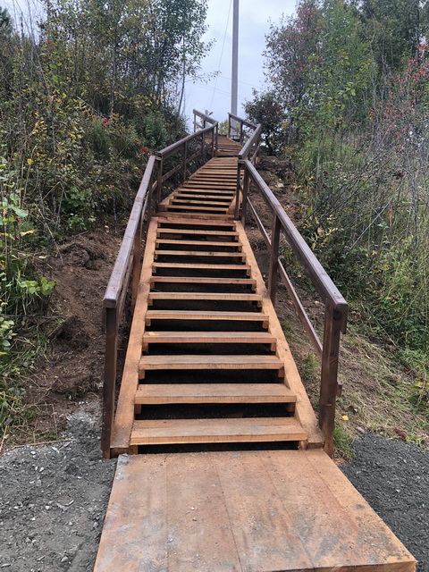 Установка опор освещения, отсыпка пешеходной зоны, установка скамеек, урн, лестничного пролета с периллами для удобства спуска