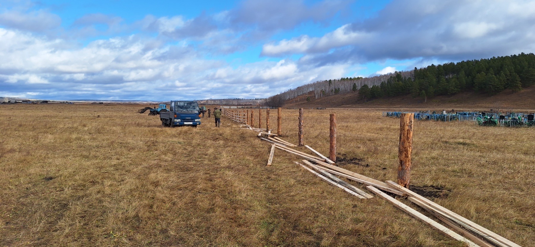 Приобретение стройматериала и работы по ограждению кладбища в 50 м на юго-восток от д.Ныгда