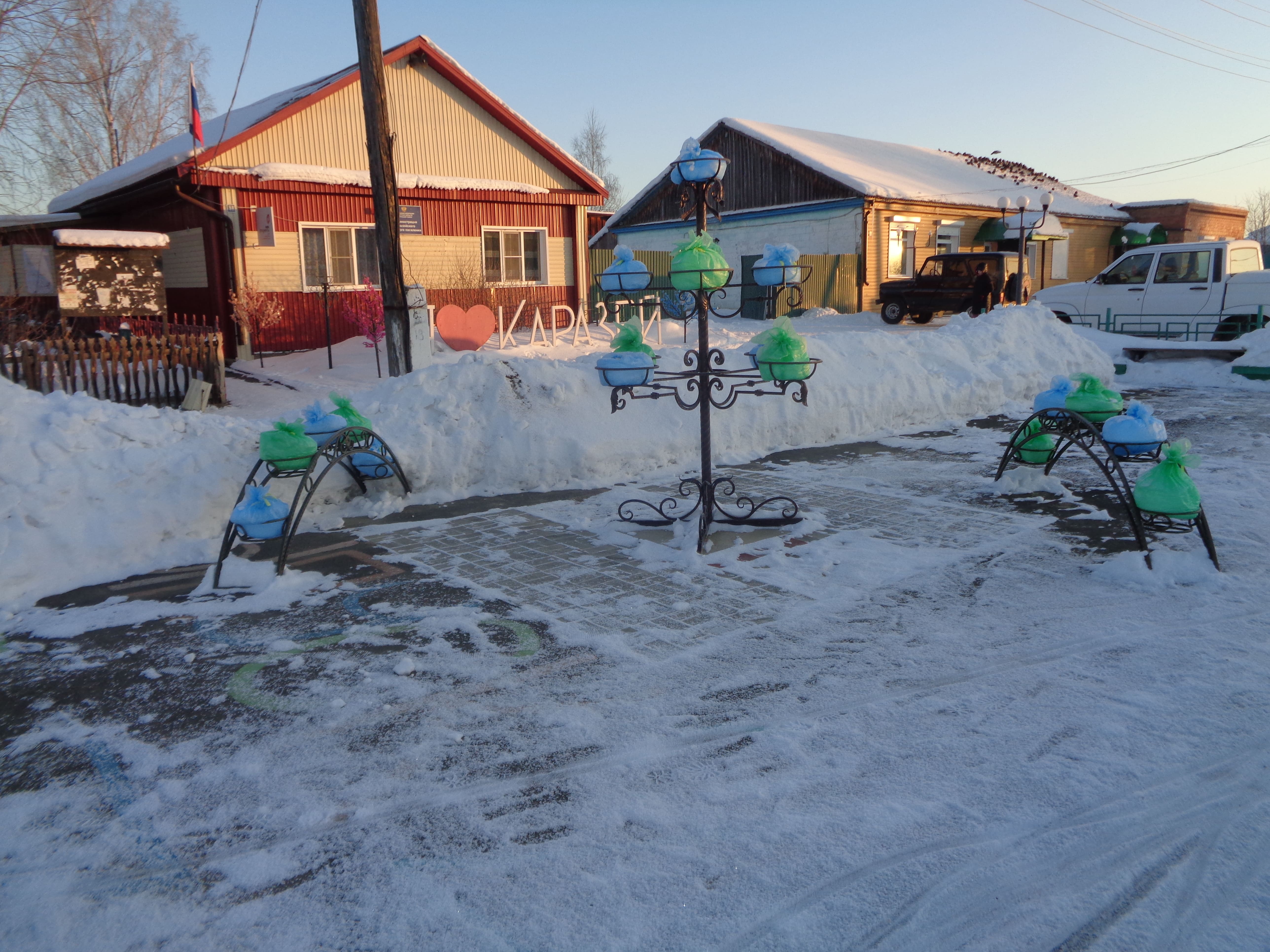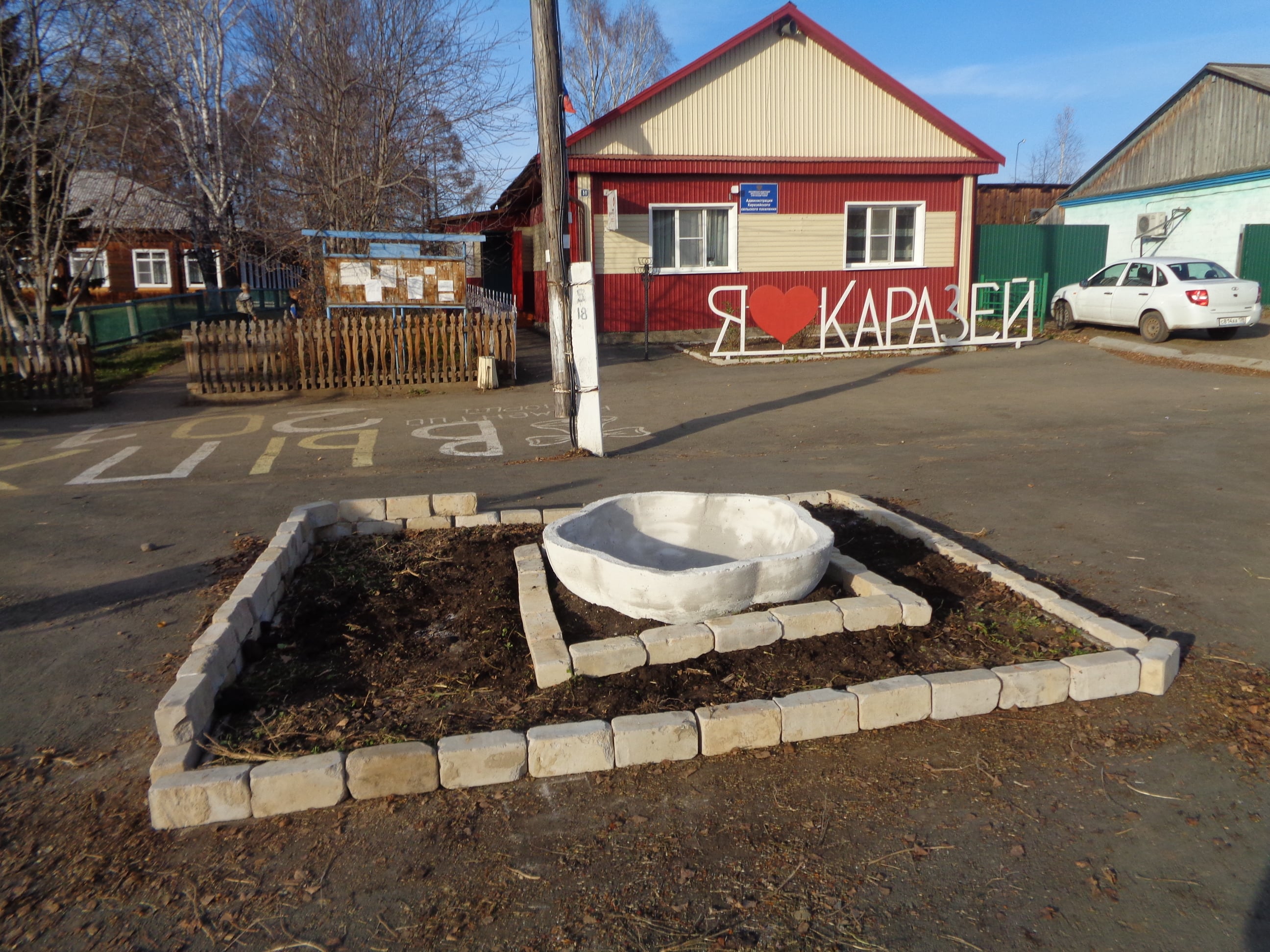 Благоустройство территории Каразейского муниципального образования (приобретение металлического подцветочника, стелы и установка собственными силами, организация освещения пешеходного перехода) (#343650)