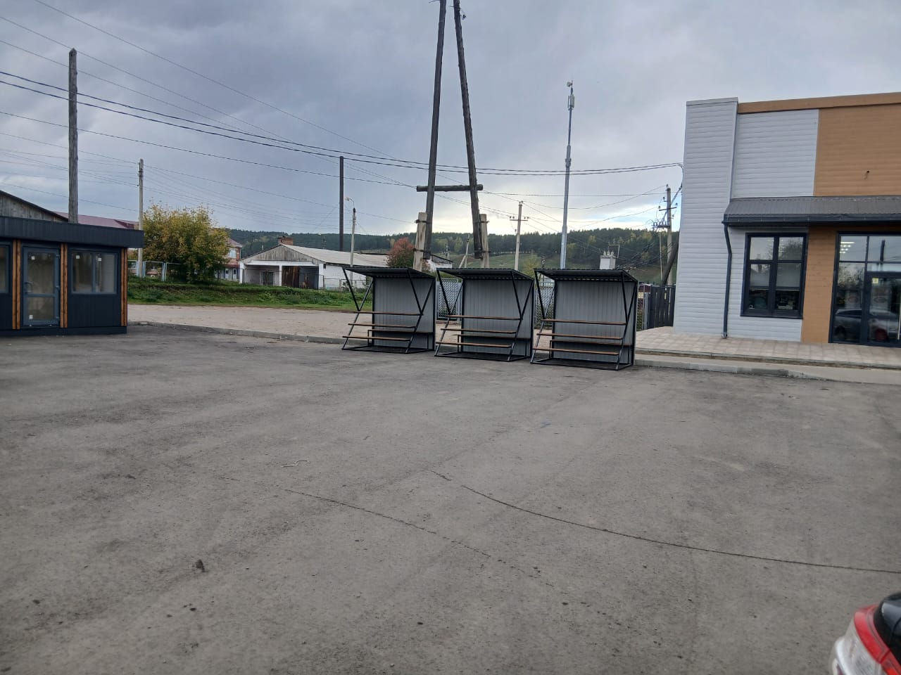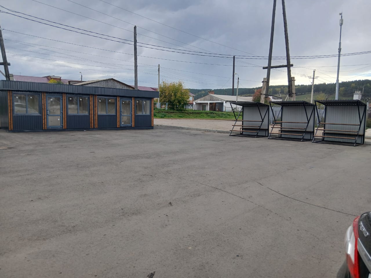 Устройство асфальтобетонного покрытия и устройство 2 торговых павильонов и 3 навесов для торговли.
